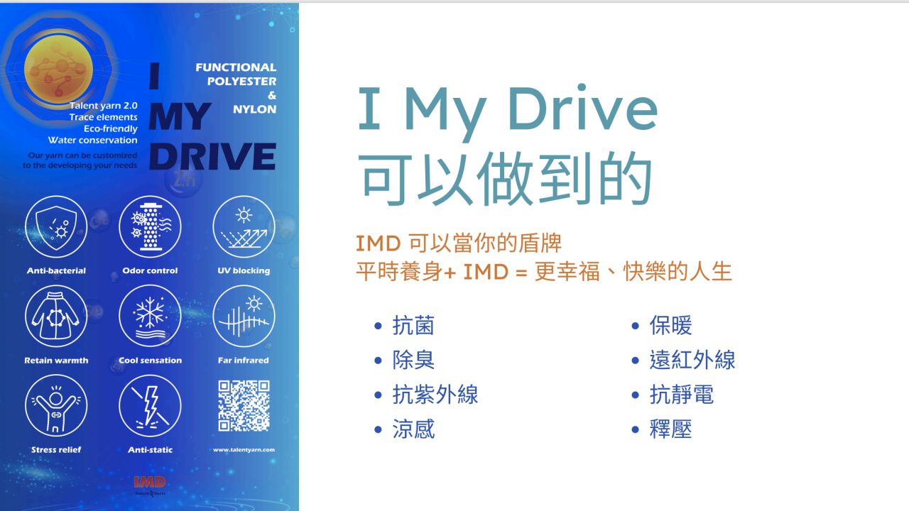 我們使用不同的元素來製造功能性紗線(IMD),為您帶來抗菌、調節溫度、輕鬆驅動您的身體機制、保護自己免受不適等。
